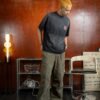Model B wears smoke grey size L, fits comfortably