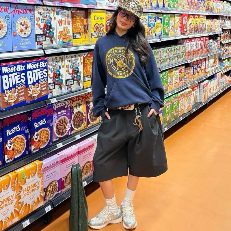 • Style with an oversized tee and sneakers for a modern everyday outfit.